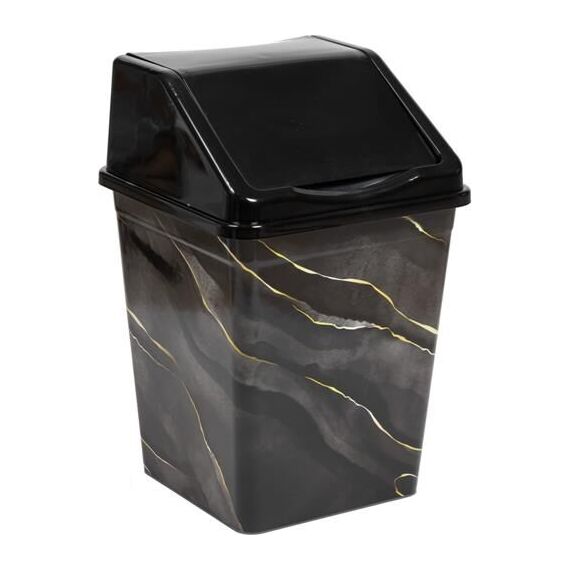 Ведро для мусора с подвижной крышкой 5л квадратное с декором "Черный мрамор". Размер (ДхШхВ) мм 190х190х270