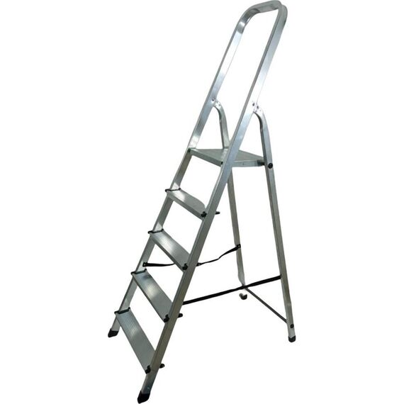 Стремянка стальная 5 ступеней. Макс. нагрузка 150 кг. Высота 110см. Вес 7,3 кг.
