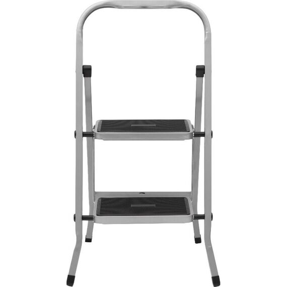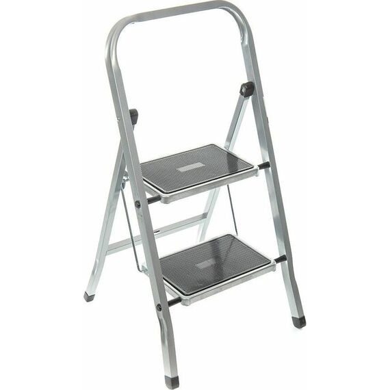 Стальная 2х ступенчатая стремянка для бытовых, ремонтных, строительно-монтажных, отделочных и садово-дачных работ. Стремянка имеет порошково-полимерное покрытие-защита от коррозии. Ступени с противоскользящими ковриками, что обеспечивает дополнительную безопасность при работе со стремянкой