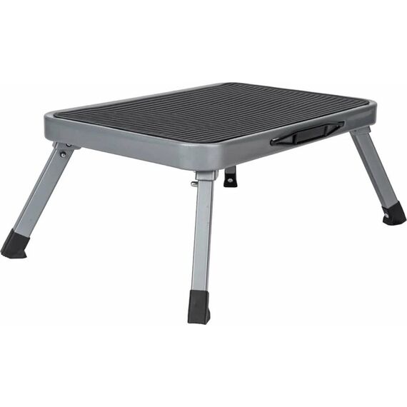 UniStor HILL Подставка-ступенька с складными ножками. Размер: 46,50(Д)х32(Ш)х17(В) см. Материал: окрашенная сталь/пластик. Тип подставка Конструкция односторонняя, складной механизм Особенности антискользящее покрытие Вид ступеней ступень Материал пластик, сталь, Окрашенная сталь Число ступеней 1 Ширина нижней ступени 26 см Глубина ступеней 38 мм Максимальная нагрузка 150 кг Высота площадки 17 см Ширина площадки 260 мм Вес 1.79 кг