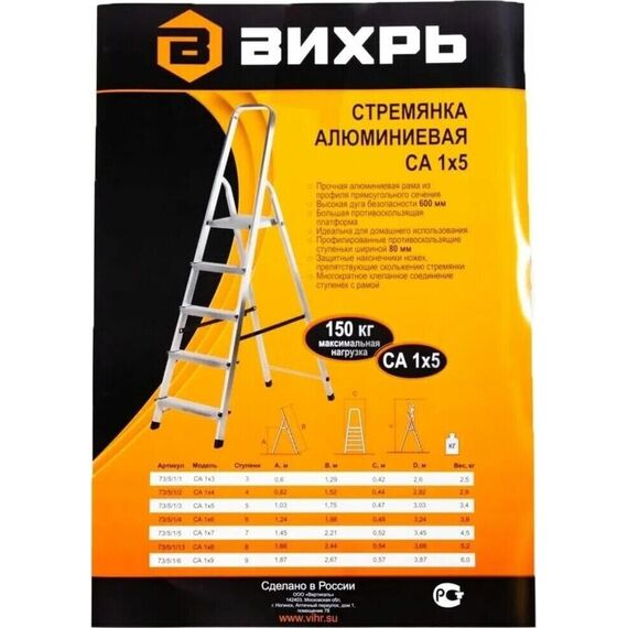 Стремянка ВИХРЬ СА 1х5 73/5/1/3