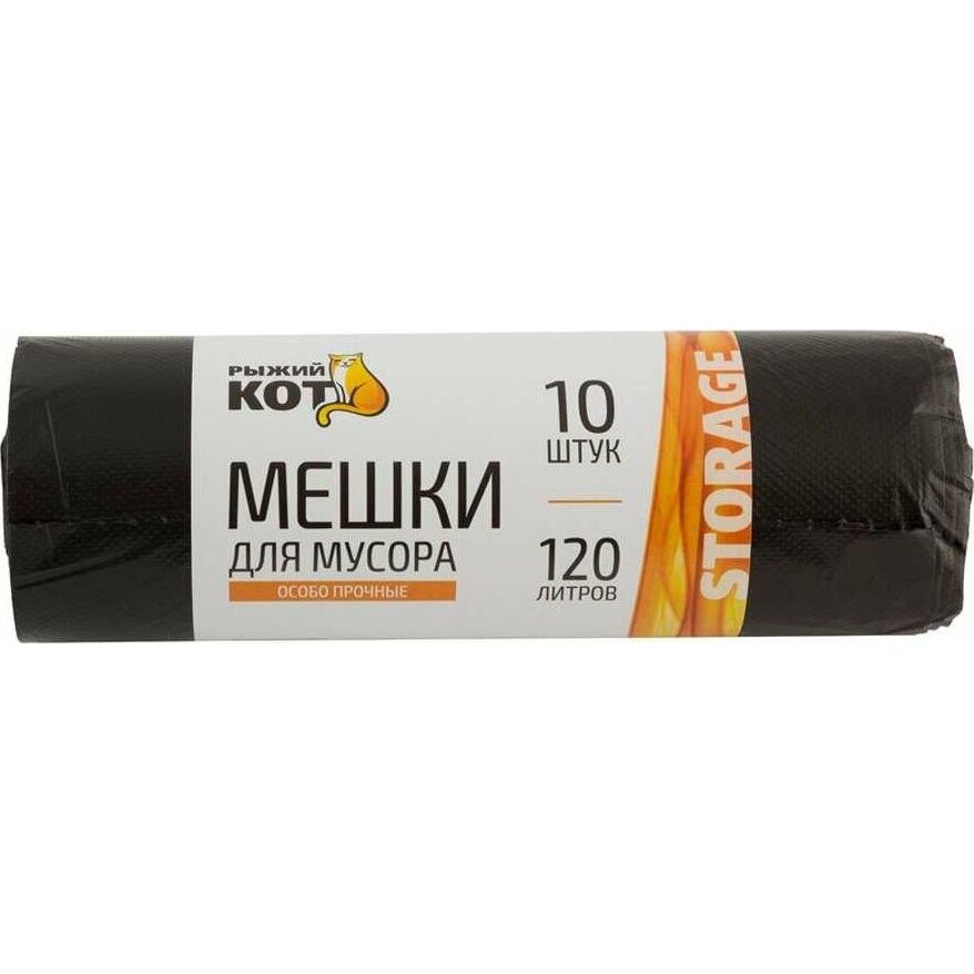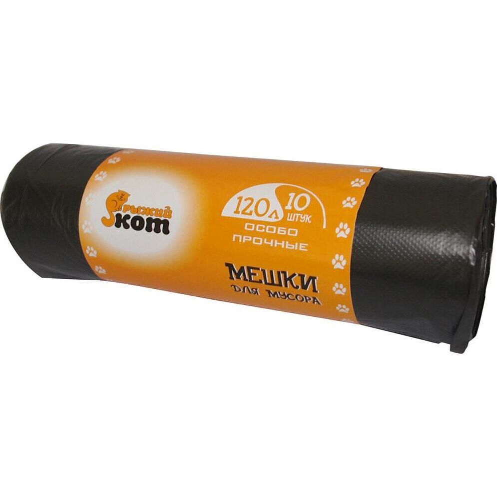 РЫЖИЙ КОТ мешки для мусора 120л особо прочные 10шт/рул. (20) (310310) черный. В рулоне: 10 штук, размер мешка длина 1100мм, ширина 700мм, плотность 19мкм. Материал: полиэтилен низкого давления.