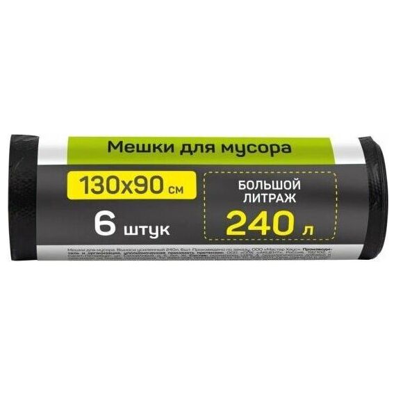 Мешки для мусора MASTER HOUSE ВЫНОСИ УСИЛЕННЫЙ 240л*6шт.ПВД 50мкр 75643