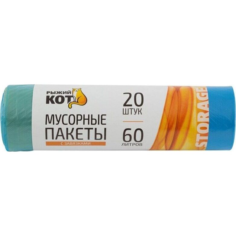 Мешки для мусора РЫЖИЙ КОТ Мешки д/мусора "РЫЖИЙ КОТ" 60л, 20шт. с завязками, ПНД синие (310399)