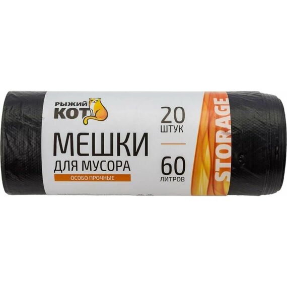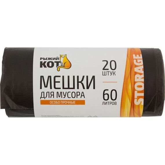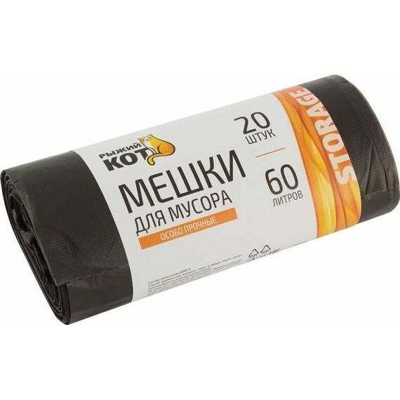 Мешки для мусора РЫЖИЙ КОТ мешки для мусора 60л 20шт/рул. особо прочные (20) (310108)