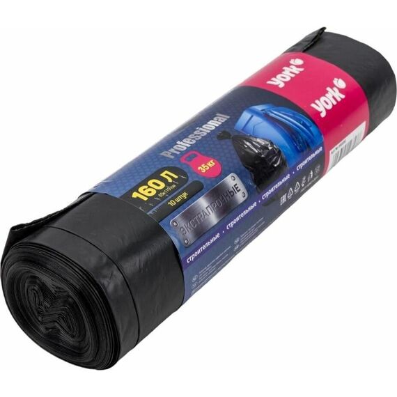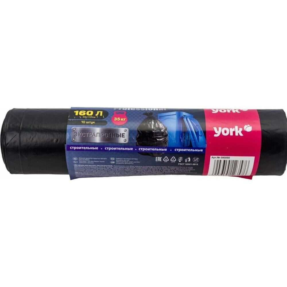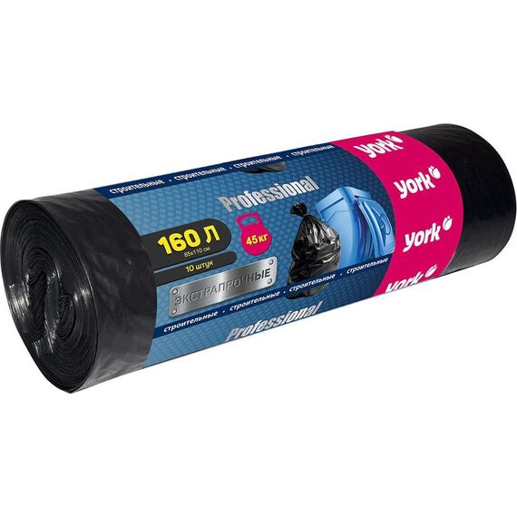 Мешки для мусора YORK мешок строительный экстрапрочный 60 мкм "YORK" 160 л. (10 шт) 090080