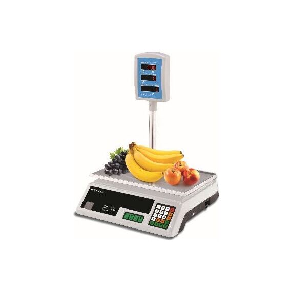 Торговые электронные весы,Счетчик цены,Цена деления: 5 г.,Функция "Тара",Тип дисплея: LED,Платформа из нержавеющей стали,Автоматический эконом режим,Автоматическая установка нуля,Суммирование покупок,220 V(+10-15%) 50 Гц,Источник постоянного тока аккумулятора 6V/4 aH - 4V,Класс точности: 3,Максимальный измеряемый вес -40 кг.Потребляемая мощность во время бездействия до 1 Вт, при взвешивании до 5 Вт,Температура воздуха от -10°C, до+40°C