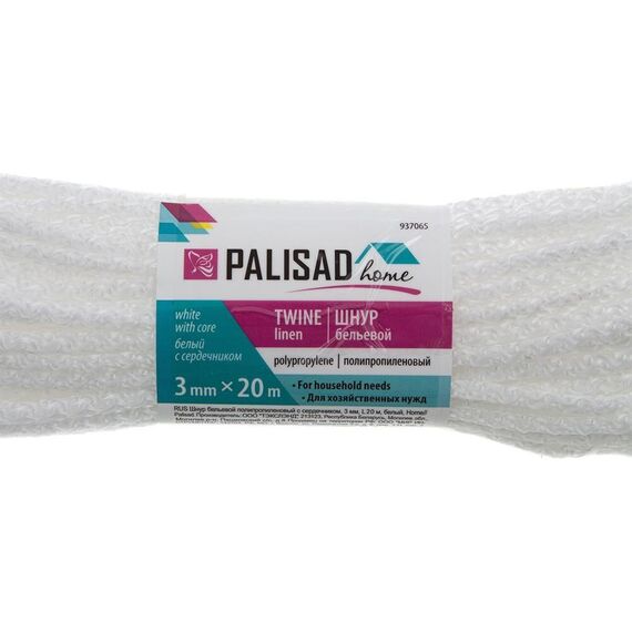 PALISAD HOME Шнур бельевой полипропиленовый с сердечником, 3 мм, L 20 м, белый, Home Palisad 937065