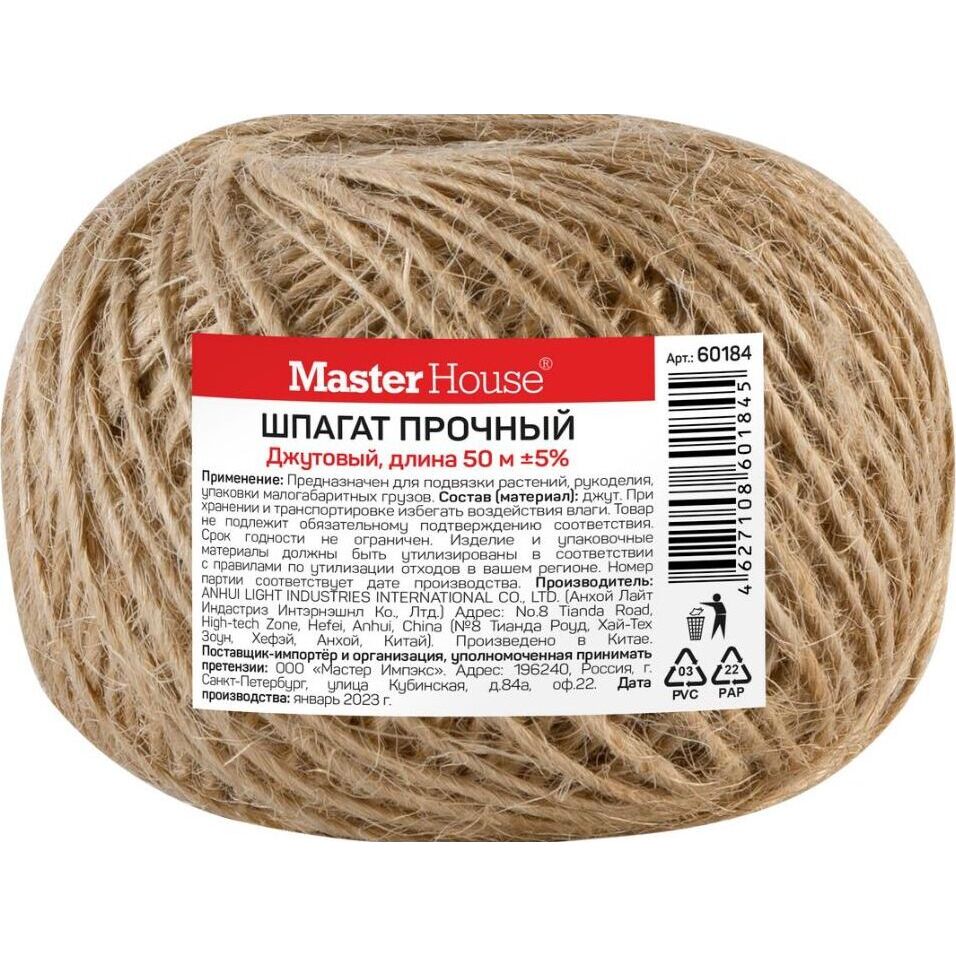 Шпагат MASTER HOUSE джутовый Прочный (клубок) 50м 1.0мм 60184