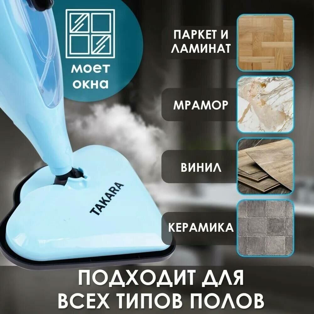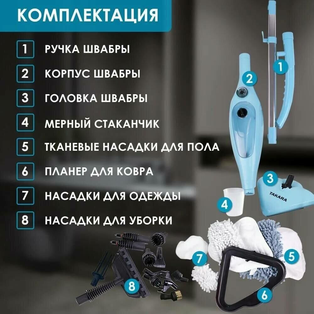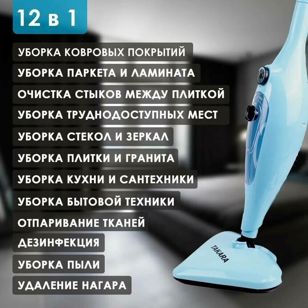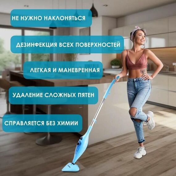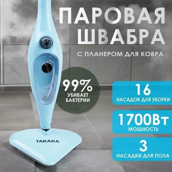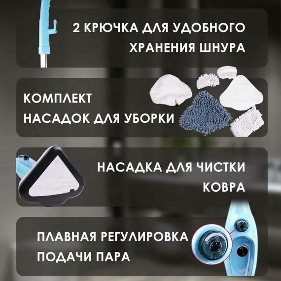 Паровая швабра голубая, эффективная дезинфекция, 12в1 способна самостоятельно стоять вертикально в любом месте, что делает ее более удобной в хранении. Абсолютно экологична и безопасна, так как горячий пар прекрасно справляется с любыми загрязнениями без применения моющих и чистящих средств. Используется для: влажной уборки дезинфекции горизонтальных и вертикальных поверхностей керамической плитки чистки ковровых покрытий и линолеума отпаривания одежды чистки мягкой мебели мытья окон и зеркал Идеально подходит для использования в режиме пароочистителя и уборки труднодоступных мест в доме, такие как батареи, вентиляционные решетки и т.д. Номинальное напряжение: 220-240 В Номинальная частота: 50 Гц Выходная мощность: 1600 Вт (+5%, - 10%) Емкость резервуара для воды: 450 мл Давление пара: 1.8-2 бара.