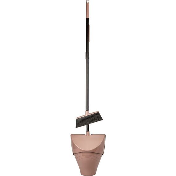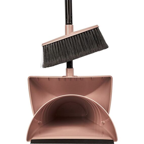 Набор для уборки коллекция Vogue, большой совок, с крышкой, бежевый, с длинными ручками, 135х275х1260 Длинные ручки совка и сметки позволяют не наклоняться при уборке. Мягкая кромка совка плотно прилегает к полу, не давая проскальзывать пылинкам под него. Высокие края совка Vogue препятствуют разлетанию собранного мусора. При переноске совка, закрывается крышка, мусор не видно и он не разлетается. Совок из прочного долговечного пластика можно использовать как в помещении, так и на улице. Щетка с длинной ручкой Vogue с плотной набивкой притягивает пыль и мусор, удерживая пыль среди ворсинок, оставляя поверхность пола абсолютно чистой. Щетка расположена под небольшим углом к креплению ручки, что позволяет без труда заметать пыль под мебелью. Щетка и совок устойчивы к бытовой химии и горячей воде. Щетка удобно закрепляется на ручке совка Voguel и компактно хранится в вертикальном положении или с совком на крючке.