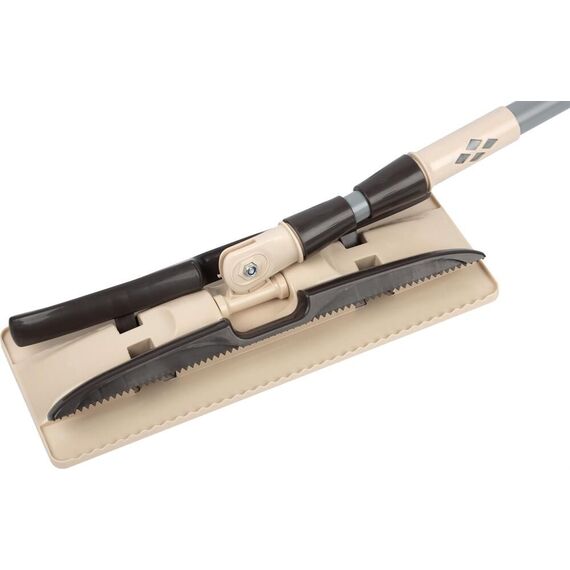 Размер рамки: 36х12 см Размер насадки: 38х23 см Длина швабры:76-125 см Рукоятка телескопическая Материал: полипропилен, металл, микрофибра Скребок-очиститель насадки в комплекте Цвет: бежево-коричневый Упаковка: рукав Крепления зажимы позволят надежно закрепить тряпку на швабре и вы сможете без лишних усилий проложить работу в комфорте. А благодаря скребку вы сможете с легкостью очищать насадку от пыли, волос и других различных загрязнений."