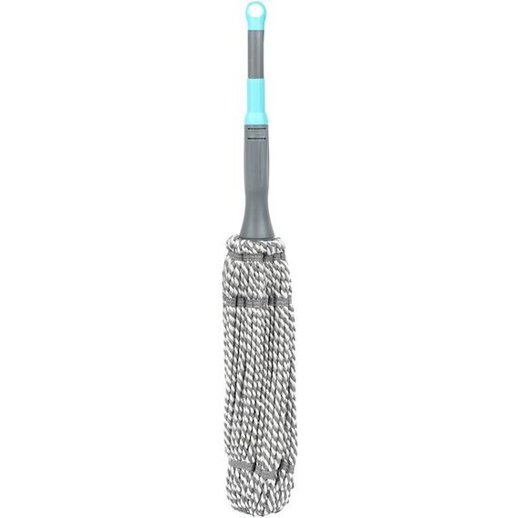 Швабра Твист с телескопической ручкой Длина швабры: 84-134 см (металлическая трубка с порошковым покрытием) Материал: металл, пластмасса, микрофибра (100 % полиэстер). Вес насадки: 170 гр белой и серой пряжи из микрофибры Упаковка: цветной рукав