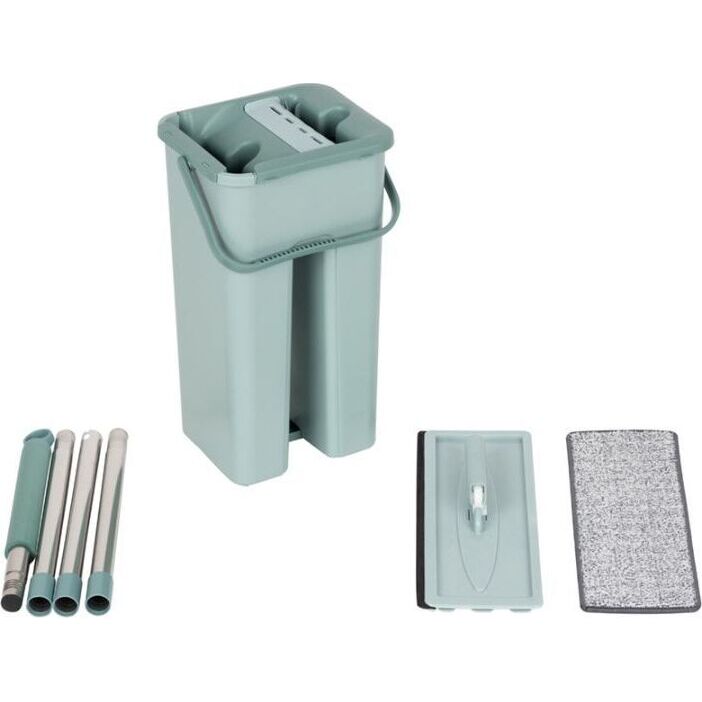 Размер ведра: 36х20х14см (со сливом) Рамка: 32х12см Длина швабры: 117см с мягкой ручкой (швабра сборная 4 части), насадка из микрофибры на липучке Упаковка: цветная коробка Ведро состоит из двух отсеков: для мытья и отжима. В одном отсеке ведра вы поласкаете тряпку из микрофибры прямо на швабре, в другом отсеке вы отжимаете тряпку без прикосновения к самой тряпке из микрофибры. Система работы швабры с отжимом позволяет выполнять быструю и качественную уборку во время которой не нужно пачкать руки.