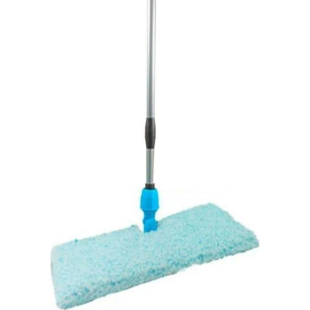 Швабра Размеры: длина ручки - 120 см; размер платформы: 37х15 см, тип ручки: телескопическая; материал: пластик, насадка двусторонняя. Швабра предназначена для сухой и влажной уборки гладких поверхностей, таких как пол, стены и потолок. Подходит для всех типов напольных покрытий (паркет, ламинат, керамика, линолеум, мрамор). Специально разработанная конструкция швабры помогает распределить давление на всю платформу. Платформа швабры в месте крепления к рукоятке имеет шарнирную конструкцию, благодаря чему швабру можно удерживать под любым углом к полу. Швабра имеет усиленную конструкцию поворотного соединения: обеспечивает долгий срок службы и позволяет добраться до труднодоступных мест за счет мобильности в движении.