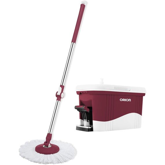 Ведро с педалью Швабра с телескопической ручкой Основание швабры круглой формы Вращение на 360 градусов Легкий отжим: педаль и центрифуга из нержавеющей стали Отверстие для слива воды Отверстие для моющего средства Состав: сталь, пластик