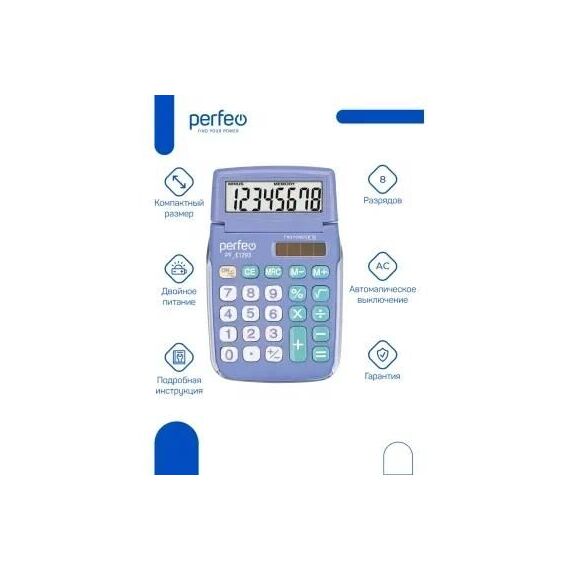 Калькулятор PERFEO (PF_Е1293) PF_Е1293, 8-разр., синий