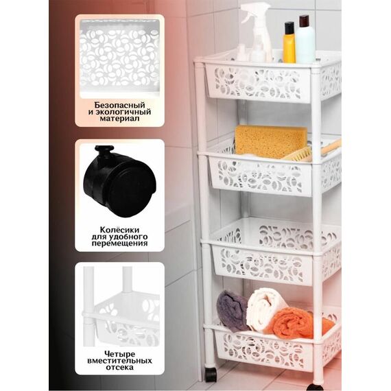 Этажерка KEEPLEX KL282912048 Этажерка Light на колесиках четырехсекционная прямоугольная 37х29х19см белое облако