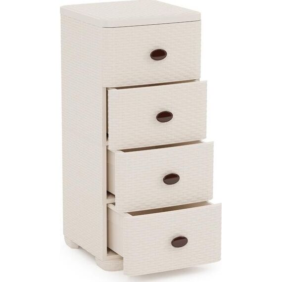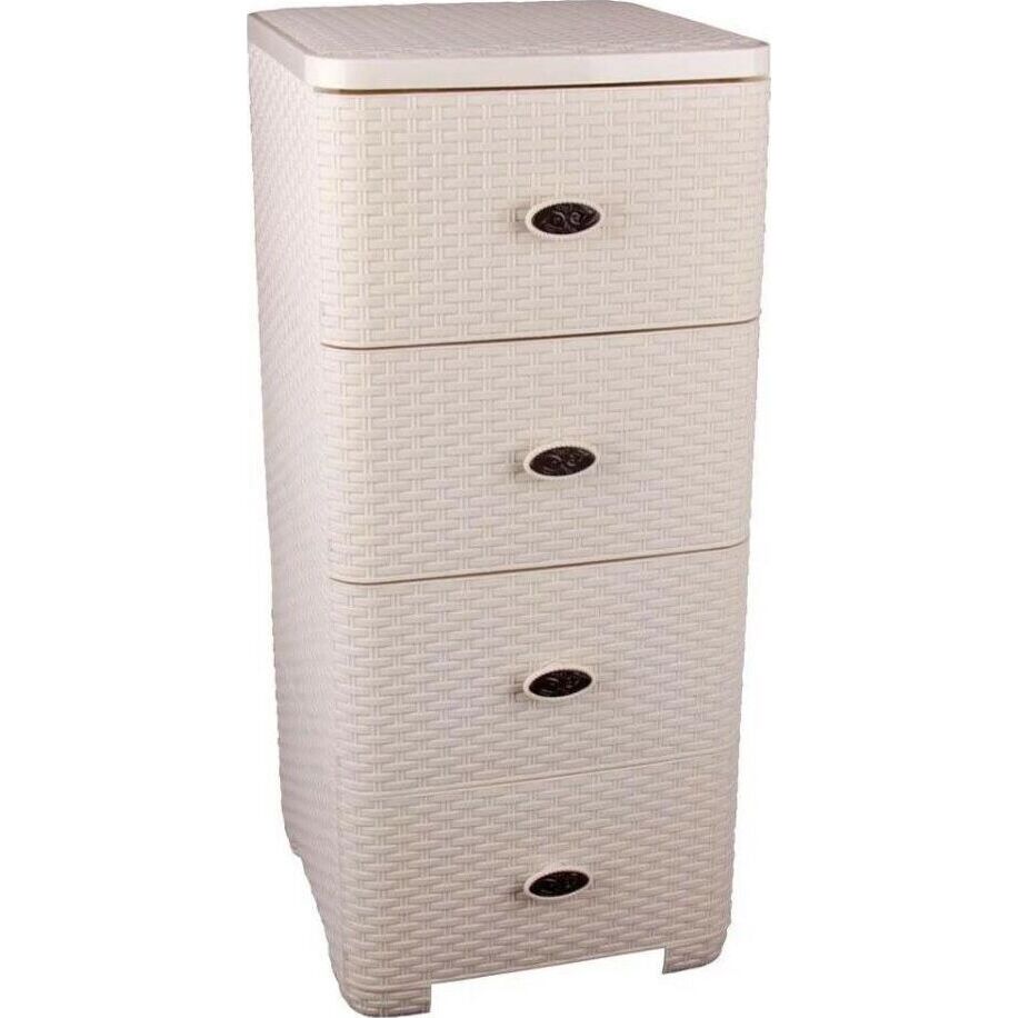 Изделие способно гармонично вписаться в интерьер любой комнаты.Комод произведен из высококачественного и безопасного полипропилена. Комод имеет четыре выдвижных ящика большой вместимости, в которых будет очень удобно хранить личные вещи и другие принадлежности. Вес 4.88 кг. Размеры изделия (ДхШхВ) 375х360х830 мм.