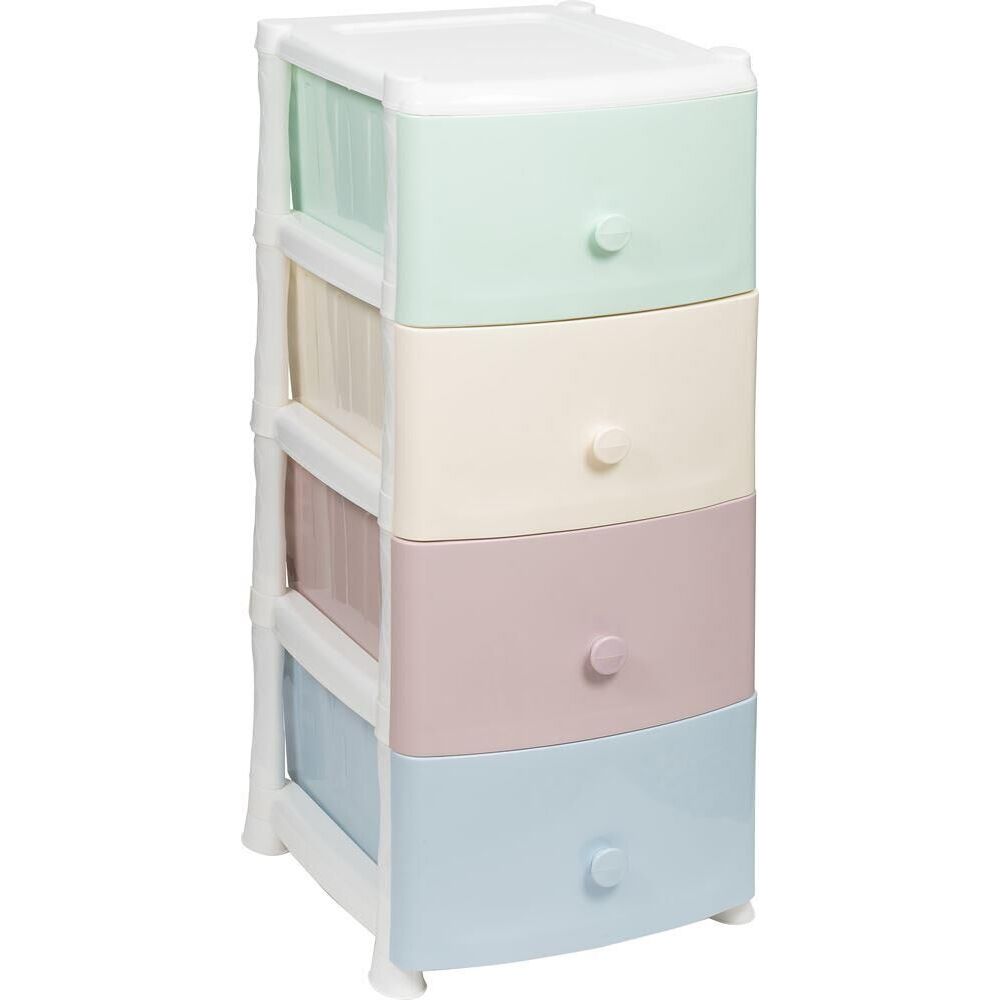 Комод 4-х секционный с ручкам «Junior» цвет (микс). Размеры (д*ш*в) 390х470х950 мм. Цвет белый; мятный; слоновая кость; розовая пудра; голубой Материал изделия пластик; полипропилен