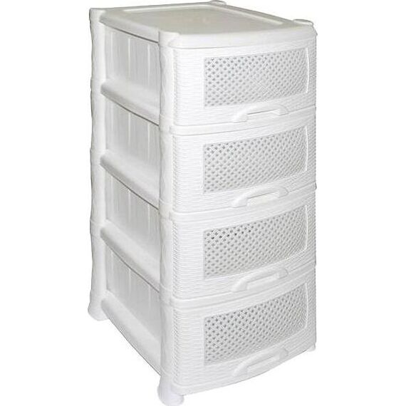 ЦВЕТ: белый. РАЗМЕР ИЗДЕЛИЯ: 470 x 390 x 950 мм. МАТЕРИАЛ: Полипропилен. Комод из пищевого пластика с четырьмя выдвижными ящиками предназначен для хранения вещей и продуктов питания и гармонично впишется в интерьер любой комнаты. Легкий и вместительный комод поможет обеспечить порядок, избавит от разбросанных игрушек или одежды, убережет продукты от пыли и заветривания.