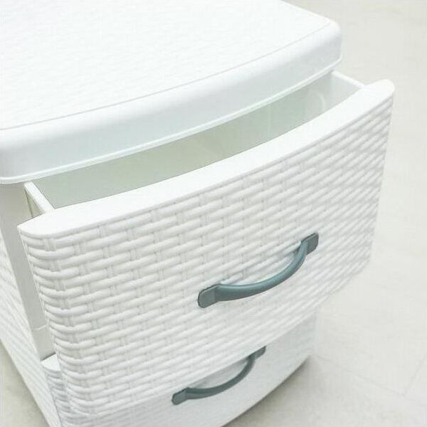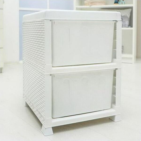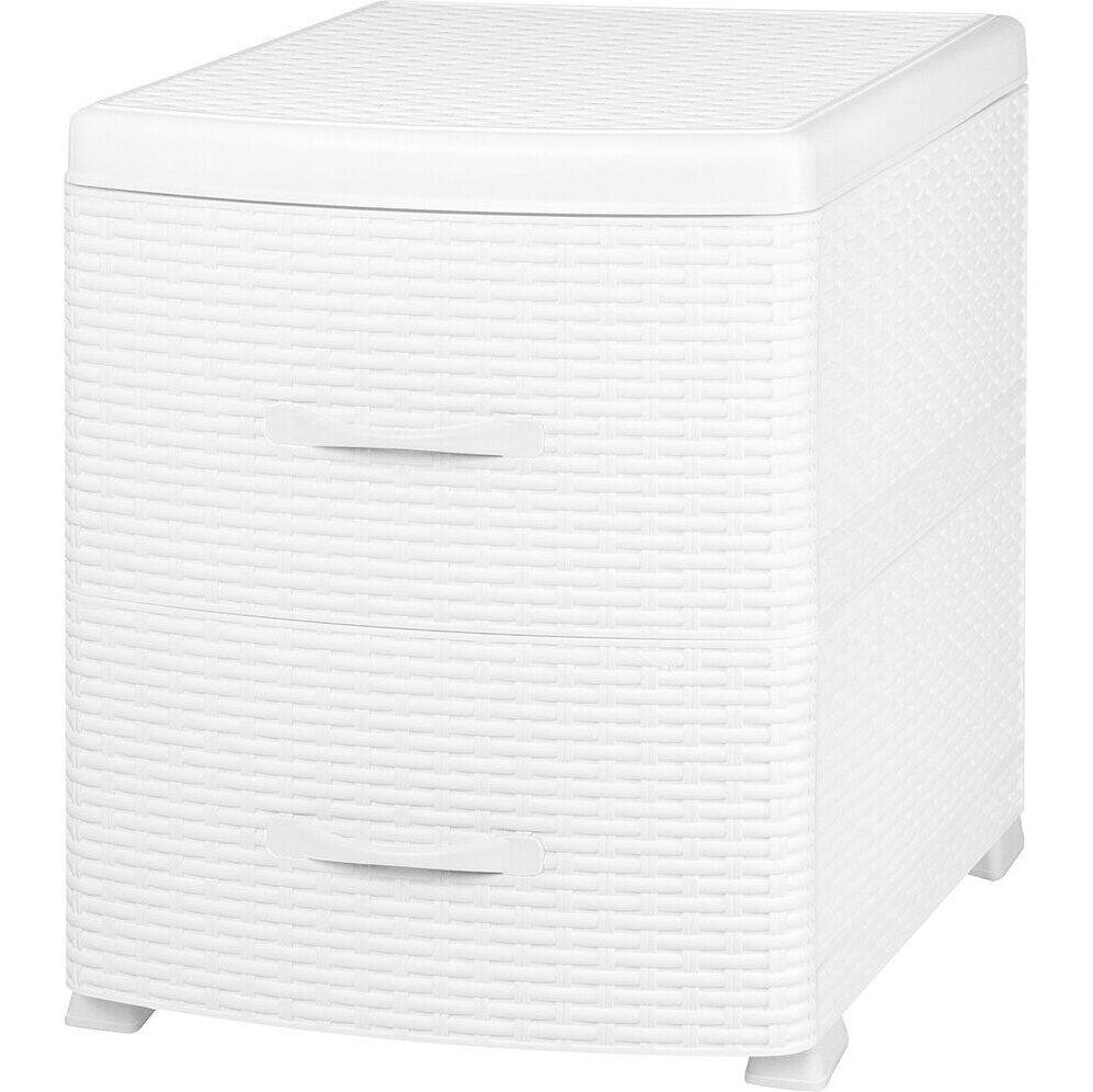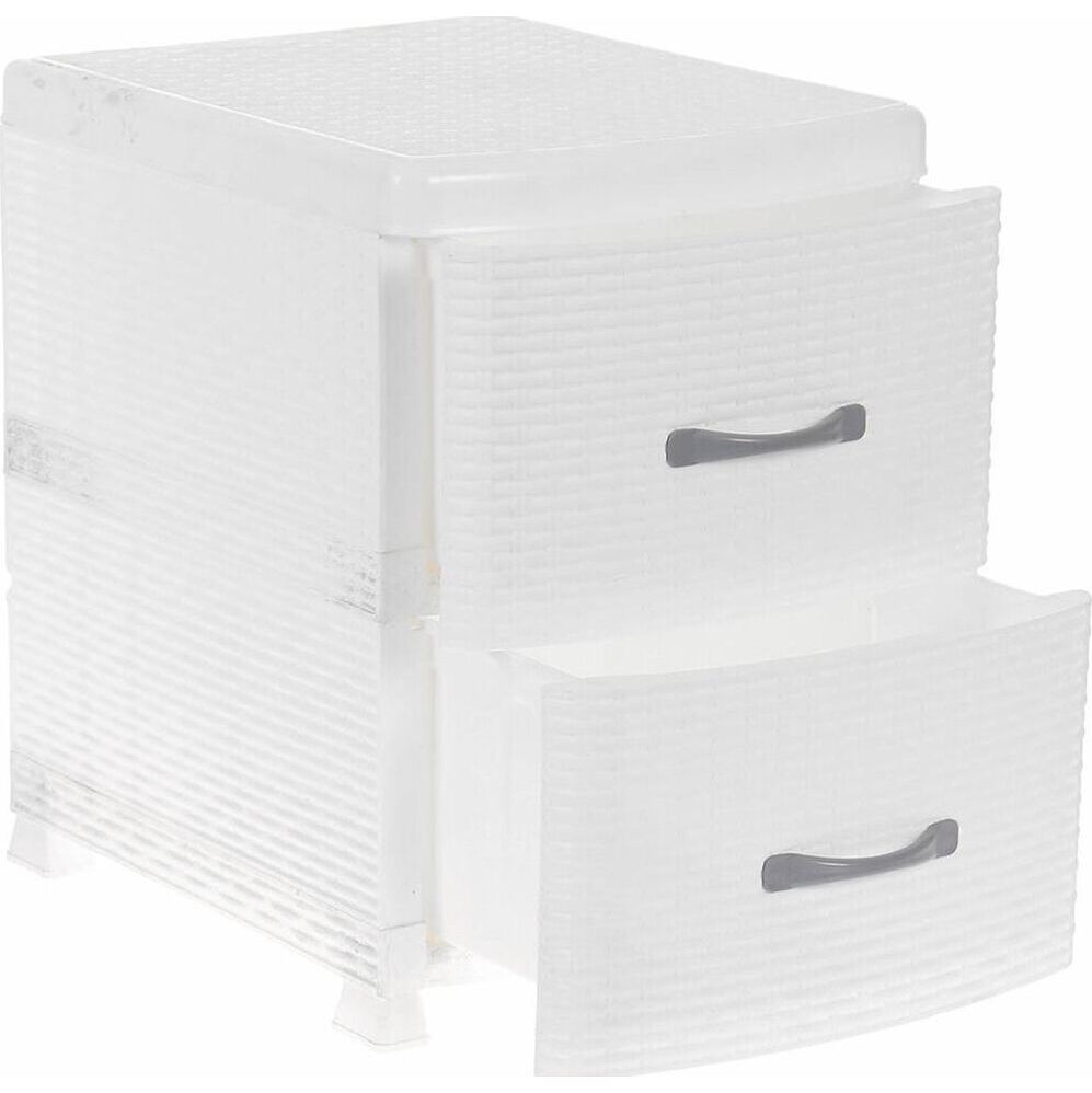 ЦВЕТ: белый. РАЗМЕР ИЗДЕЛИЯ: 480 x 380 x 520 мм. МАТЕРИАЛ: Полипропилен. Комод-тумба из пищевого пластика с двумя выдвижными ящиками предназначен для хранения вещей и продуктов питания и гармонично впишется в интерьер любой комнаты. Особенно гармонично будет смотреться в спальне, выполняя функцию прикроватной тумбочки.