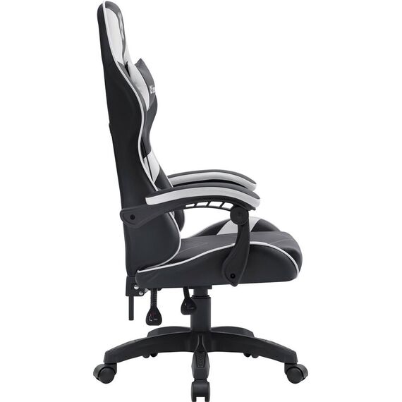Цвет: чёрный + белый Максимальный вес: 120 кг Тип наполнителя: Полиуретан высокой плотности Материал рамы: металл Материал обивки: Мягкая и прочная экокожа Подголовник: нет Подставка для ног: нет Тип механизма: регулируемый по высоте и наклону Наклон спинки: 135 ° Подсветка: нет Класс газлифта, высота подъема, максимальная нагрузка: Класс 3, подъем 100 мм, до 150 кг Крестовина, размер и материал: 350 мм, высокопрочный пластик Колеса, размер и материал: Диаметр 50 мм, высокопрочный пластик Размеры кресла: 49*47*125-135 см Размеры спинки: 49*4*80 см Размеры сиденья: 52.5*47*6 см Вес кресла: 14 кг Высота сидения: 42–52 см Высота сидения с подлокотниками: 69–79 см