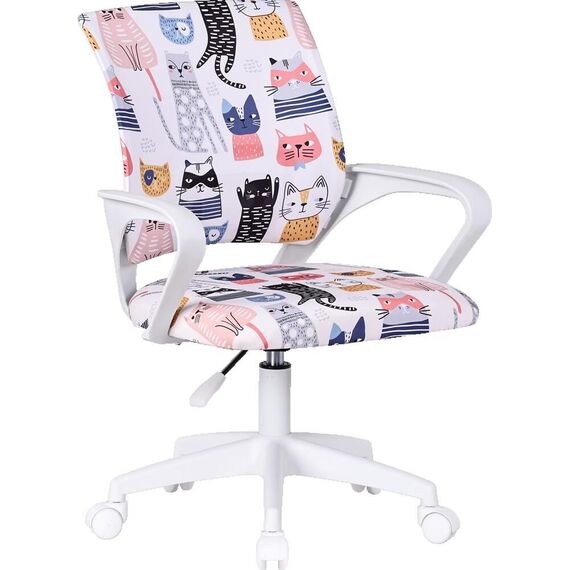 Кресло DEFENDER (64815) Fiesta белый+принт Коты,ткань,класс1