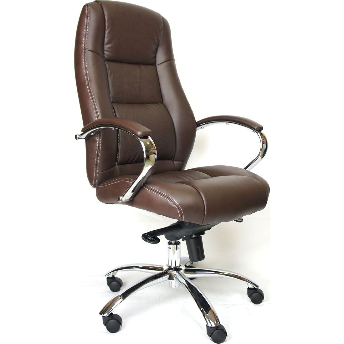 Исключительный комфорт и элегантный дизайн сочетаются в кресле Everprof Kron M с обивкой из коричневой экокожи. Обивка выполнена из прочной и легко очищаемой экокожи, которая добавляет ощущение уюта в любой офис. Поясничная поддержка заботится о вашем благополучии на протяжении всего рабочего дня, поддерживая осанку и снижая риск болей в спине. Механизм качания «Мультиблок» позволяет фиксировать кресло в различных положениях, предоставляя вам гибкость в выборе оптимального угла наклона спинки. Крестовина из хромированной стали и металлические подлокотники с накладками из экокожи обеспечивают прочность и долговечность кресла. Кроме того, допустимая нагрузка составляет 120 кг, что делает его универсальным решением для большинства пользователей.; Ролики с диаметром штока 11 мм идеально подходят для паркетных полов, обеспечивая бесшумное перемещение. Газ патрон для регулировки высоты дополняет функциональность, делая кресло удобным для людей ростом до 185 см. Вес: 19,1 кг,Объем: 0,184м3
