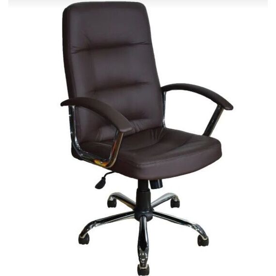 Кресло руководителя.Каркас кресла состоит из двух частей, спинка и сиденье раздельные. Каркас выполнен из гнуто-клееной фанеры. Мягкие части кресла выполнены из поролона повышенной плотности. Крестовина усиленная диаметр 700 мм, материал крестовины - Хром. Материал обивки износостойкая экокожа. Кресло регулируется по высоте с помощью газ лифта. На кресле установлен механизм качания с регулировкой жесткости отклонения под вес сидящего и фиксацией в рабочем положении. Подлокотники хром с мягкой накладкой эргономичной формы. Декларация о соответствии ЕАЭС N RU Д-RU.РА01.В.67544/21