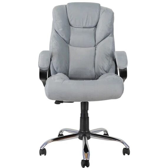 Кресло руководителя ЯРКРЕСЛА Кр87 ТГ HT12 (ткань серо-голубая)/крестовина хром/подлокотники пластик черный