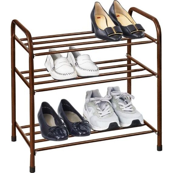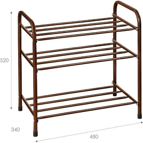 Этажерка для обуви 3-х ярусная. ЦВЕТ: коричневый. РАЗМЕР ИЗДЕЛИЯ: 340 x 480 x 520 мм. МАТЕРИАЛ: металл + полипропилен.