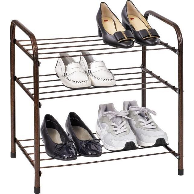 Этажерка для обуви 3-х ярусная. ЦВЕТ: коричневый. РАЗМЕР ИЗДЕЛИЯ: 340 x 480 x 520 мм. МАТЕРИАЛ: металл + полипропилен.