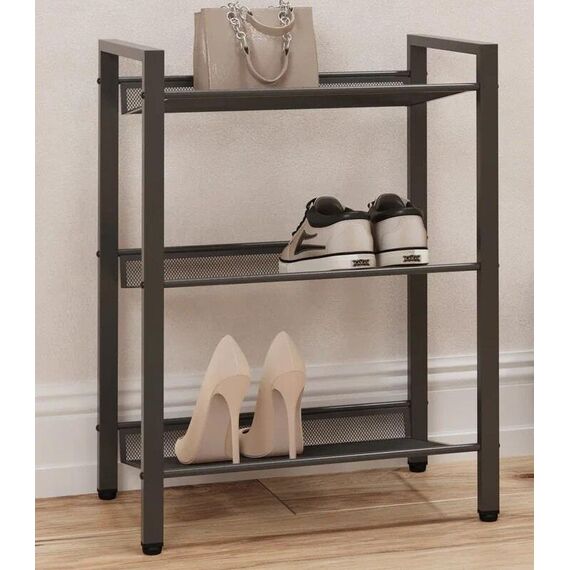 Изделие предназначено для хранения обуви в помещениях. Разборно - сварной каркас состоит из стальной профильной трубы. Полки изготовлены с использованием просечно-вытяжного металлического листа. Допустимая нагрузка на каждую полку 8 кг.