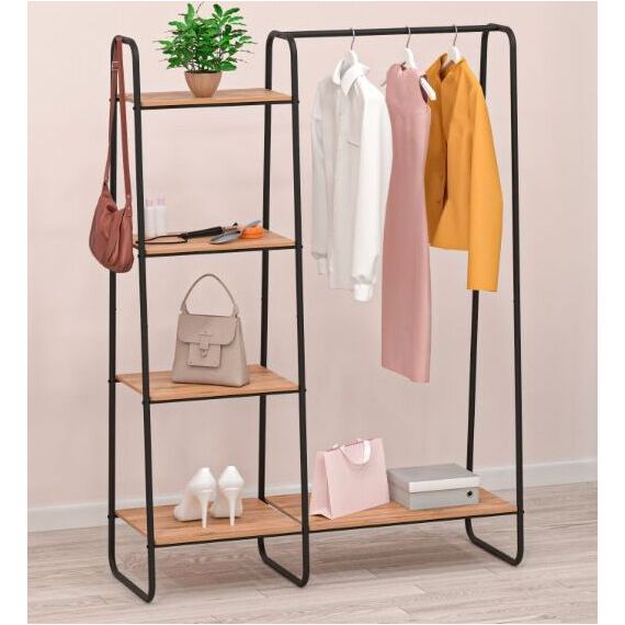 Назначение Для размещения одежды. Материал сталь, порошково-полимерное покрытие, пластик, ЛДСП, фетр. Габариты (Д*Ш*В) 110х38,5х147 см. Максимальная нагрузка, кг На полку - 10 кг На перекладину - 20 кг Вместимость плечиков: 10 шт. Уход Протереть влажной тряпочкой с мыльным средством.