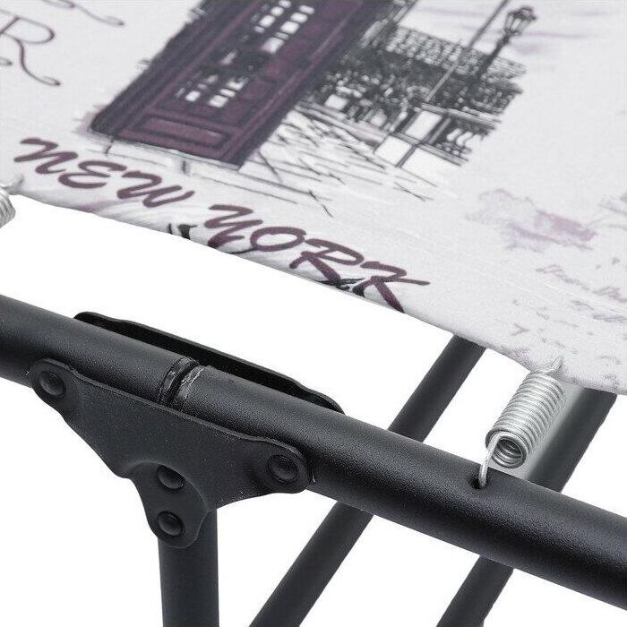Габаритные размеры изделия (длина х ширина х высота), мм : 1970х733х340. Максимальная нагрузка: 120 кг. Каркас: основание - труба стальная ф25х1,0; опоры - труба стальная ф19х1,0; полимерное покрытие; пружина. Матрас: ткань 45% п/э – 55% хлопок, плотность 108 – 111 г/м2, ткань полипропиленовая, крепление к каркасу осуществляется с помощью пружин. Регулирование подголовника: 4 положения. Размер упаковки (длина х ширина х высота), мм : 760х131х850. Вид упаковки: термоусадочная пленка, картон гофрированный. Вес изделия: нетто, кг – 7,8.