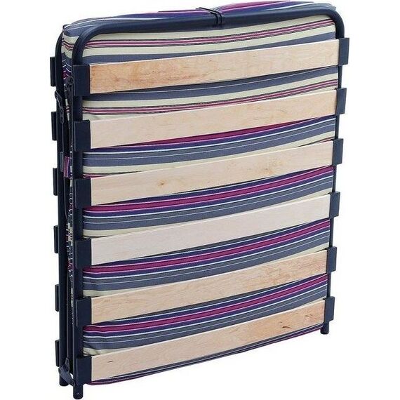 Габаритные размеры в разложенном положении (ДхШхВ) 1900х793х385 мм, Габаритные размеры в сложенном положении (ДхШхВ) 793x145х968 мм, Максимальная нагрузка 180 кг, Каркас: основание - труба стальная ф25х1,2 опоры - труба стальная ф19х1,0 полимерное покрытие, ламели – 12шт. Матрас: ткань 45% п/э – 55% хлопок, плотность 108 – 111 г/м2, наполнитель матраса поролон листовой (толщиной – 50мм), крепление к каркасу осуществляется с помощью застежек текстильных – 4шт. Размер упаковки (ДхШхВ) 800х145х968 мм, Вид упаковки: термоусадочная пленка, картон гофрированный. Вес изделия: нетто 16,1 кг.