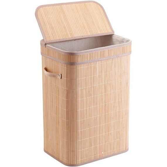 Объем:72L материал: бамбук, поликоттон, металл, МДФ размер текстильного вкладыша 41*31*66CM размер в сложенном виде 40*60*4CM крышка открыватся частично, цвет - светлый натуральный размер в собранном виде - 40X30X60 см Упаковка: пакет, цветной вкладыш