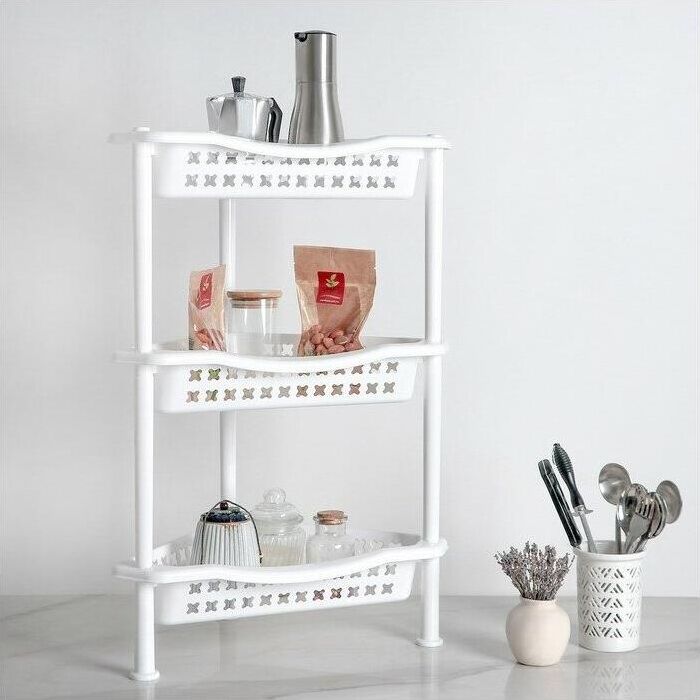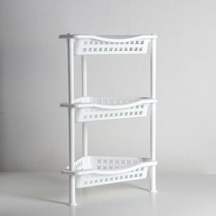 Этажерка угловая обеспечит дополнительное место для хранения необходимых предметов. Этажерка имеет три яруса, что поможет вместить больше предметов. Такая этажерка впишется в любой интерьер и будет удобна при использовании в ванной комнат и на кухне. Вес 0.673 кг. Размеры изделия (ДхШхВ) 425х270х600 мм.