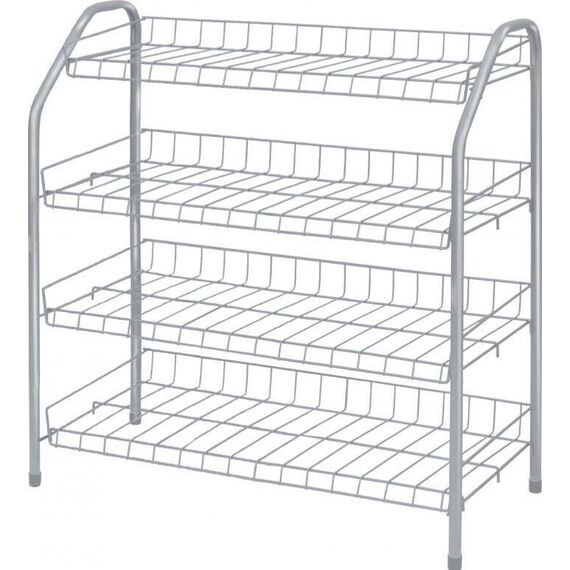 4 полки для размещения обуви металлический каркас покрытие каркаса этажерки устойчиво к механическим воздействиям пластиковые колпачки на ножках защищают поверхность пола от царапин допустимая нагрузка не более 20кг конструкция этажерки разборная Характеристики: габаритные размеры в разложенном виде (ДхШхВ): 660х280х700мм габаритные размеры в упаковке (ДхШхВ): 735х345х105мм высота между полками: 180|180|180мм вес: 3,15кг Материал: каркас - стальная труба с порошковым антикоррозийным покрытием колпачки на ножках - пластик