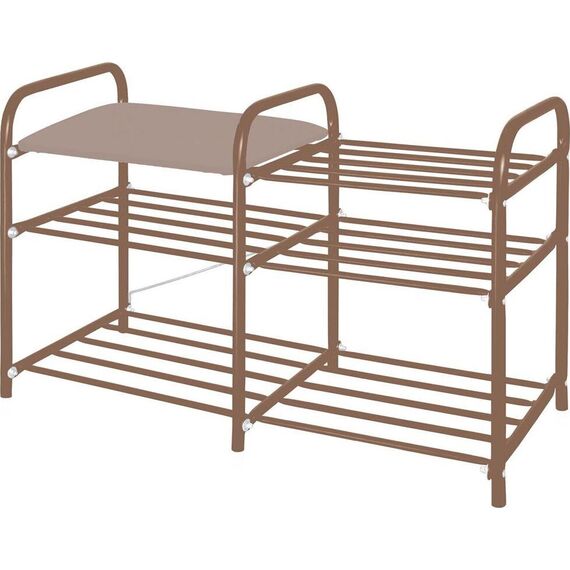 Размер изделия в разложенном виде (ДхШхВ), мм 790х330х500 Вес нетто, кг 5,4 Допустимое отклонение габаритных размеров, мм 5 Размер сиденья (ДхШ), мм 390х310 Количество полок 3 Высота между полками, мм 200/140 Преимущества: Усиленный металлический каркас Антикоррозийное покрытие устойчивое к механическим воздействиям Мягкое сиденье из винилискожи Ткань устойчивая к истиранию, легкая в чистке 3 полки для обуви Пластиковые наконечники на опорах для защиты напольного покрытия Поставляется в разобранном виде Максимальная нагрузка - 100 кг