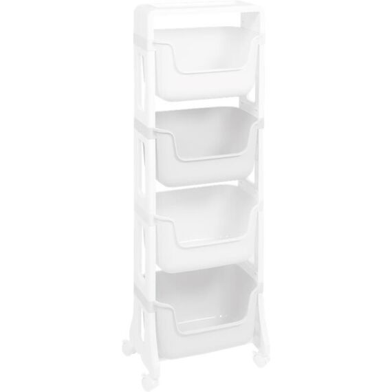 Этажерка "Junior" напольная 4-х ярусная на колесах (белый). Размер (ДхШхВ) мм 395х260х1228.
