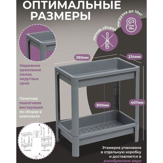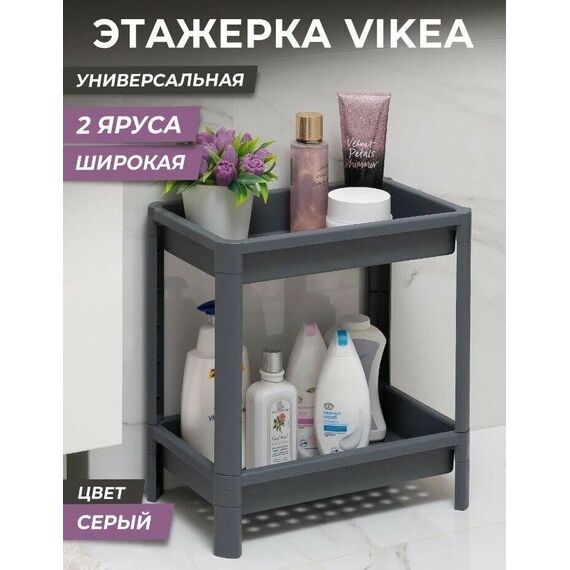 Этажерка VIOLET VIKEA 2-х ярусная широкая (серый) 781218