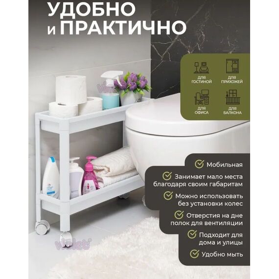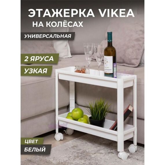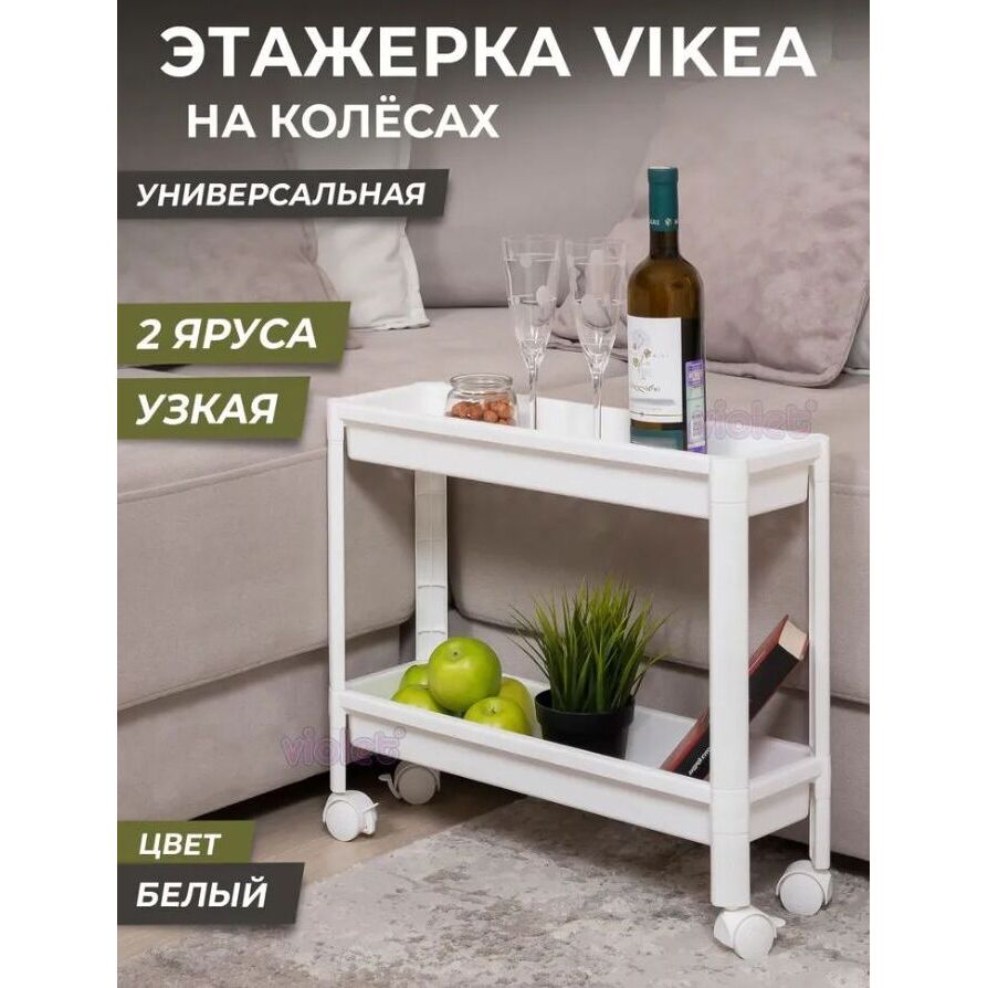 Этажерка VIOLET VIKEA 2-х ярусная узкая (белая) 782206
