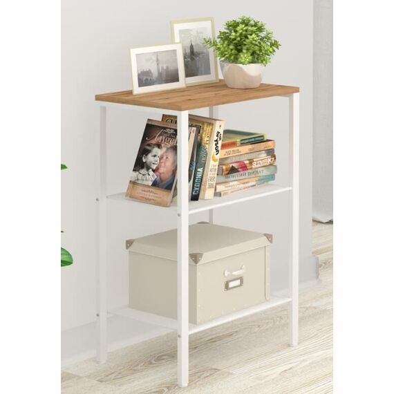 Изделие предназначено для хранения домашних и офисных предметов. Представляет собой стеллаж с 3 полками, выполненными из просечно-вытяжного листа и верхней полки из ЛДСП. Разборный каркас состоит из стальной профильной трубы 15х25 мм. В комплект входят регулируемые пластиковые опоры. Все изделие окрашено однотонной, порошковой краской. Допустимая нагрузка на полки до 8 кг.