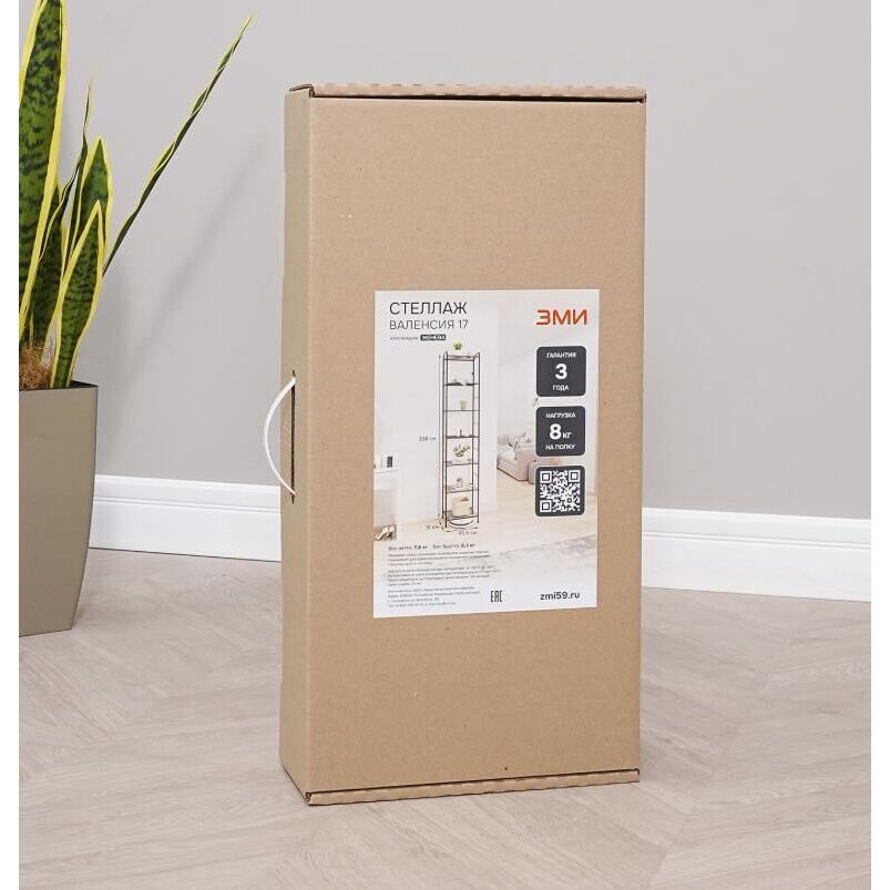 Эстетика: современный дизайн в сочетании с разнообразием цветовых решений позволяет выбрать стеллаж, который гармонично впишется в любой интерьер. Преимущества: стильный дизайн, который впишется в любой интерьер; полки выдерживают нагрузку до 8 кг, что позволяет разместить короба, кофры и другие предметы; прочная металлическая конструкция обеспечивает надёжность и долговечность изделия. Штрихкоды: Белый - 4610195635343 Чёрный - 4610195635336 Графит - 4610195636531 Характеристики Назначение Для хранения вещей во внутренних помещениях Материал сталь, порошково-полимерное покрытие, пластик Индивидуальная упаковка 635 х 430 х 95 мм Габариты (Д*Ш*В) 46 х 30,6 х 225,5 см Вес Нетто 7,6 кг Вес Брутто 8,1 кг Объем 1 шт. 0,026 м³ Материал упаковки Гофрокороб Страна производитель Россия Гарантия 36 месяцев Общий объем 0,026 м³ Количество шт. в 1 м3 38 шт. Максимальная нагрузка, кг До 8 кг на полку Уход Протереть влажной тряпочкой с мыльным средством Температура применения, °C от 0 °C до +30 °C