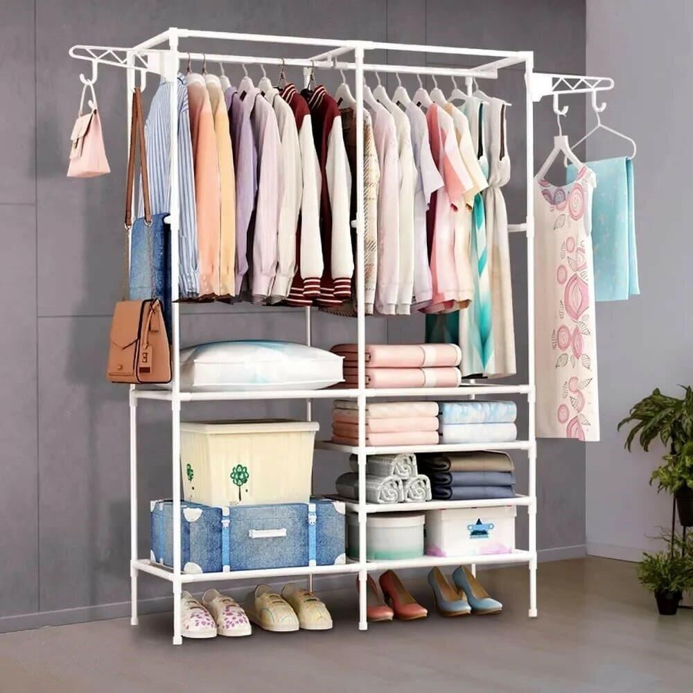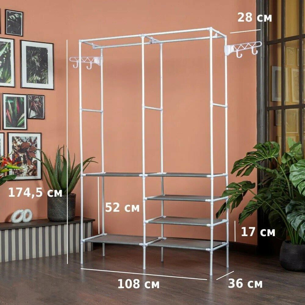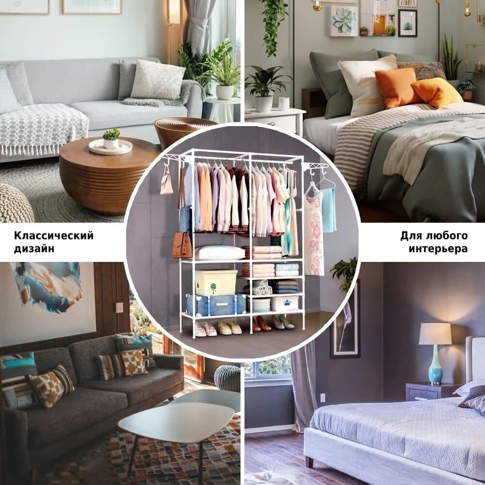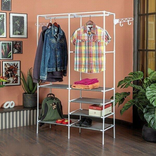 Простая и легкая двойная напольная вешалка с крючками позволит хранить все необходимые вещи рядом. Вмещает в себя большое количество вещей, позволяя грамотно вписать ее в любое пространство. Боковые вращающиеся крючки можно использовать для хранения сумок, шапок, а также мелких аксессуаров. • Размеры в сборе: 108x36x174,5 см • Материал: стальная труба Ø 16 мм (толщина 0,2 мм), полипропилен, нетканый материал с водоотталкивающим покрытием. • Цвет трубы: белый • Цвет ткани: серый • Количество полок: 6 • Максимальная нагрузка: 40 кг • Вес нетто: 2,35 кг • Размер индивидуальной коробки: 55x8,5x34 см • Вес брутто: 2,65 кг • Количество в коробке: 5 штук • Размер транспортной коробки: 57,5x42,5x36,5 см • Вес брутто транспортной коробки: 14,10 кг • Производитель: Helex Home • Страна: Китай