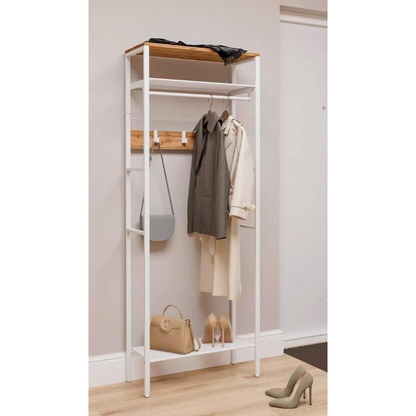 Гардеробная вешалка «ТОРОНТО 23Л» — это стильное и функциональное решение для организации пространства в вашем доме. Она поможет вам эффективно использовать свободное место и хранить одежду, обувь и аксессуары в порядке. Габариты изделия: 67х31х179,5 см. Габариты упаковки: 722х325х120 мм. Нагрузка на полку ПВЛ - 8 кг. Нагрузка на полку ЛДСП - 10 кг. Нагрузка на крючок - 5 кг. Нагрузка на вешало - 20 кг.