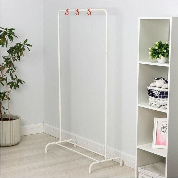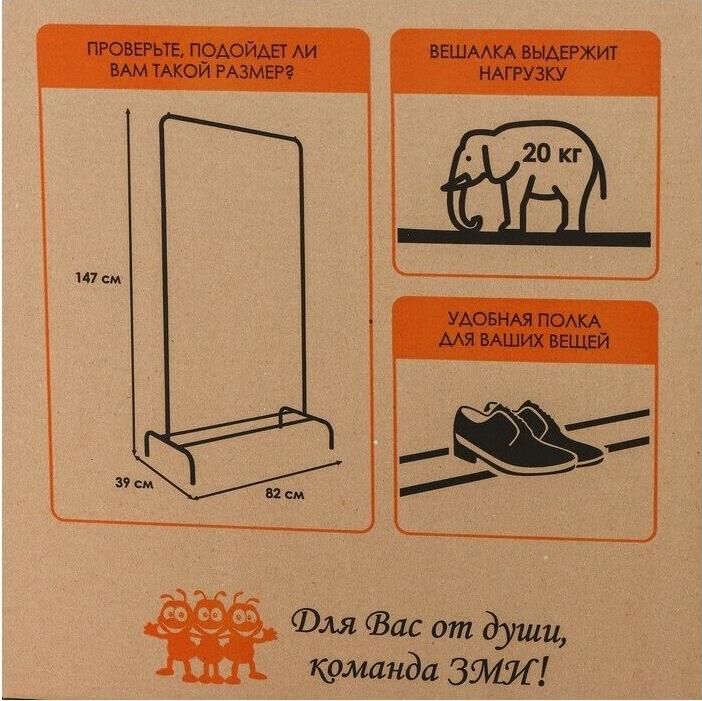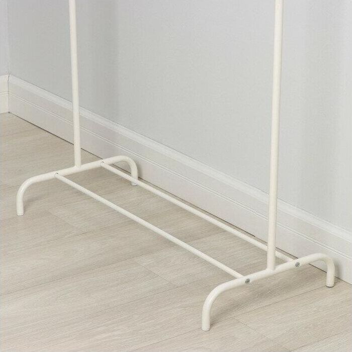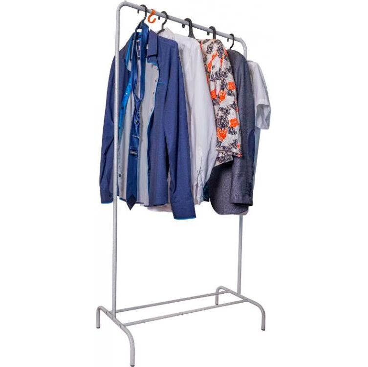 Отличительные особенности: - Пластиковые заглушки. - Вместимость до 15 плечиков. - Полка для размещения обуви. - допустимая нагрузка до 20 кг. Материал Труба диаметром 18 мм, труба диаметром 12 мм; стальные шарики; полимерно-порошковое покрытие. Габариты (Д*Ш*В) 82*39*150 см.