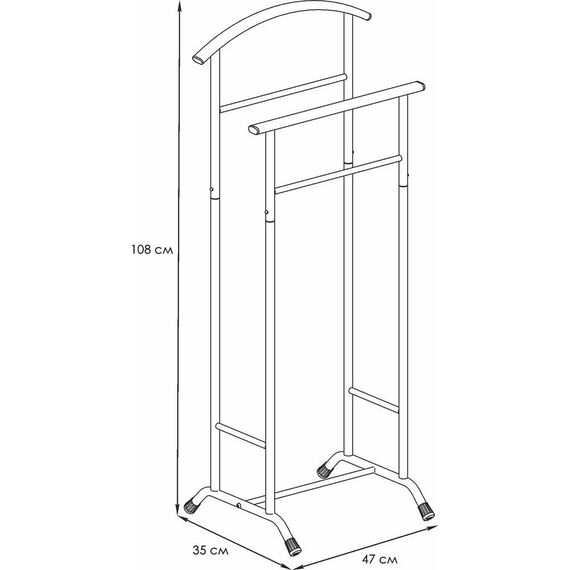 Отличительные особенности: - надежная сварная конструкция. - вместительная модель, на которую с легкостью можно уместить полный комплект костюма – пиджак, рубашку, брюки и галстук. - изящная форма изделия прекрасно впишется в любой интерьер. - нагрузка на плечико - 3кг. - общая нагрузка - 10 кг. Материал Сталь, полимерное покрытие, пластик. Габариты (Д*Ш*В) 47х35х108 см.